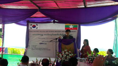 '따야웨이 베이직 에듀케이션 미들스쿨' 교실 건축 기증식에는 짜일렛 시장, 시의회 의장 등 지역인사와 시티건설 관계자 등 약 120명이 참석해 기증서와 감사증을 전달했다.