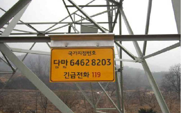 '국가지점번호판'은 소방서와 경찰서 등이 각자 사용하던 위치를 표시하는 방법들을 하나로 통일해 놓은 거예요. 산과 들, 바다 등 건물이 없는 지역의 위치를 쉽게 글자와 숫자를 이용해서 표시해요. 이 번호판을 이용하면 전국 각 지역에서 통일된 위치를 알수 있어요.