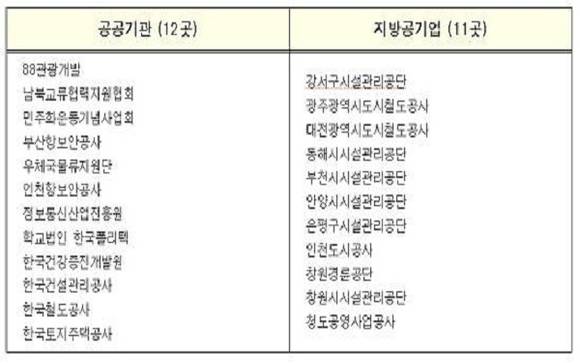 고용노동부에서 조사를 하고 발표한 자료에 따르면, 청년을 의무적으로 고용해야 하는데 하지 않은 공공기관으로는 한국철도공사, 한국토지주택공사 등 공공기관 12곳이나 된대요. 그리고 인천도시공사, 대전광역시도시철도공사 포함한 지방의 공기업 11곳 등 총 23곳으로 드러났어요.