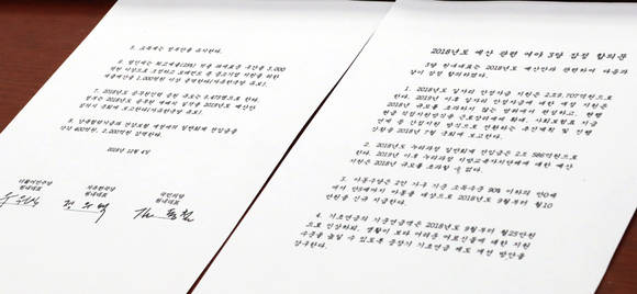 최대 쟁점 중 하나였던 공공부문 충원은 여당이 제시한 1만2200명에서 3000명가량 모자란 9475명으로 확정됐다. 한국당은 이에 유보 의견을 달아 불편한 심기를 드러낸 한편 여야는 정부가 2018년도 공무원 재배치 실적을 내후년 예산안 심의 때 국회에서 보고해야 한다는 단서를 달았다.