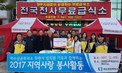 한편 이날 봉사활동 시작하기 전에 급식소 관계자와 전체 봉사자들이 참여한 가운데 여수상공회의소에서 준비한 100만원 상당의 쌀과 후원금을 급식소에 전달했다.