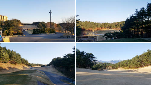 박 캐디의 설명을 들으며 도착한 13번 홀은 장타자에게 유리한 홀로, 비거리를 멀리 낼 수 있다면 실력을 자랑해도 된다. 이어 14번 홀은 홀 전체가 침엽수로 둘러싸인 홀로 아직 초겨울이라 그런지 페어웨이 좌측의 단풍이 눈을 즐겁게 했다. 주위를 감상하며 도착한 전반 마지막 18홀 역시 장타자에게 유리한 홀로 계곡의 형태를 하고 있었다.