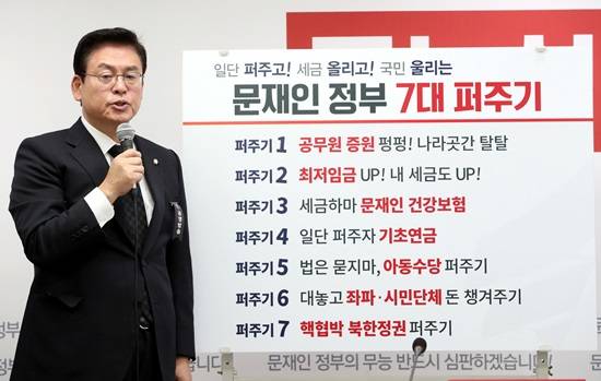 정우택 한국당 원내대표는 의원총회 후 기자들과 만나 "잠정 합의된 공무원 9475명에 대해서도 도저히 받아들일 수 없다는 의견들이 많았다"며 "법인세 인상도 중소기업에 대해 세율 인하에 대한 논의가 있었다"고 말했다.