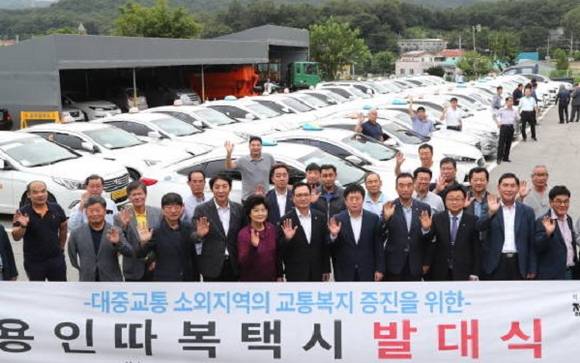 용인시에서는 지난 8월부터 용인시 처인구 원삼면사무소에서 따복택시에 참여한 46대의 개인택시가 모여 전국에서 처음으로 전자쿠폰을 사용해서 운영하는 용인 따복택시를 운행하도록 했어요.