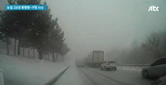 대설주의보가 내려졌던 서해안고속도로에서 26중 추돌 사고가 발생했다.