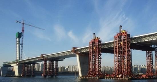 교량의 랜드마크인 주탑은 100m 중 60m, PSC 거더는 41개 중 21개, 북단연결로 교각 5곳을 시공 중이다.