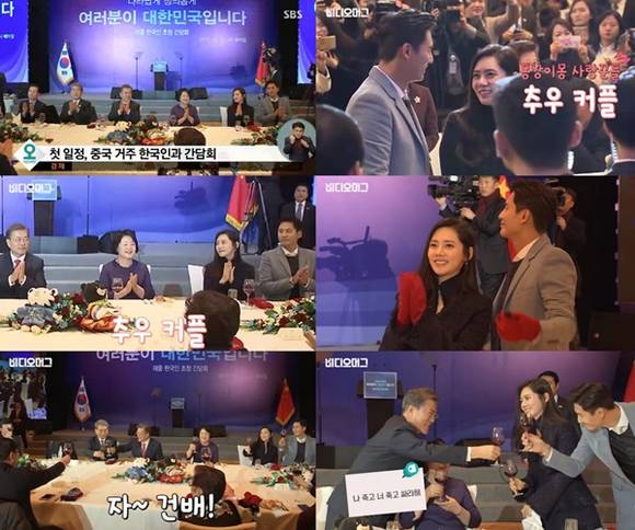 SBS 예능 프로그램 '동상이몽 시즌2 - 너는 내 운명'(이하 너는 내 운명)에 출연하며 큰 사랑을 받고 있는 '추우부부' 추자현♥우효광은 지난 13일 중국을 국빈방문 중인 문재인 대통령 내외가 참석한 재중 한국인 초청 간담회에 모습을 드러내 큰 관심을 모았다.