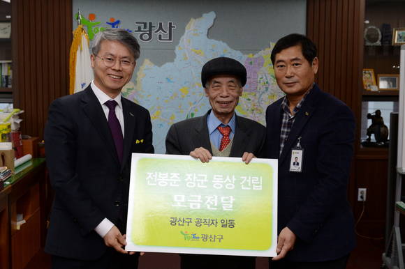 [프라임경제] 광주광역시 광산구 공직자들은 역사학자 이이화 전봉준 장군 동상건립위원회 이사장에게 성금 약 200만원을 19일 전달했다.
