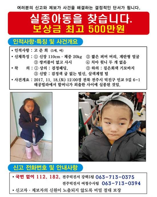 고준희 실종 전단지 = 전주덕진경찰서 제공