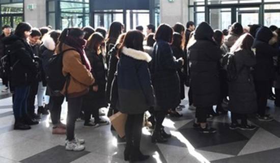 이들은 종현 빈소 앞에 질서정연하게 줄을 서서 침통한 표정으로 빈소 개방 시간을 기다리는 중이다.