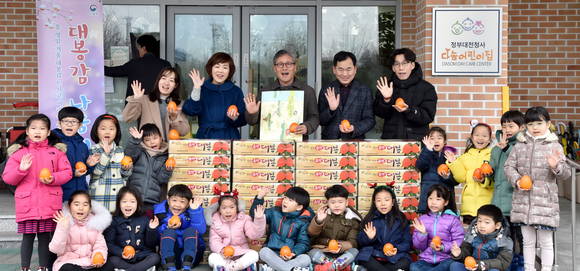 이날 청사 내 어린이집 원아, 청사 경비대 소속 의무경찰에게 70박스, 환경미화원 등 청사 직원에게 340박스의 대봉감을 간식으로 제공했다.