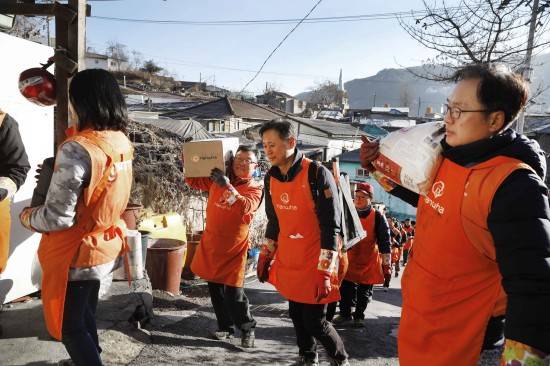 [프라임경제] 한화그룹은 이번 정기인사를 통해 승진한 신임 임원 중 서울 근무자 40여명이 연말을 맞아 노원구 상계동에서 연탄배달 및 생필품 전달 봉사활동을 진행하며 어려운 이웃들에게 따듯한 온정을 나눴다고 26일 알렸다.