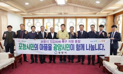정현복 광양시장은 "포스코를 중심으로 포항시와 20년 넘게 형제와 같이 지내온 도시로서 포항시 이재민들이 빠른 시일 내에 일상으로 돌아갈 수 있도록 15만 광양시민과 함께 마음을 담았다"고 말하며 성금을 전달했다.