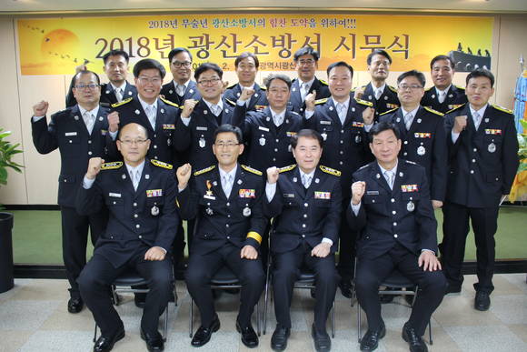 [프라임경제] 광주광역시 광산소방서(서장 김병환)는 2일 소방서 2층 대회의실에서 소방공무원과 의용소방대원 등 80여명이 참석한 가운데 2018년 무술년 시무식을 전개하고 힘찬 새해를 시작했다.