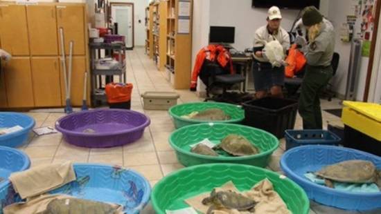 미국 시민들은 SNS에 기절한 이구아나를 찍은 사진을 게시했다. 플로리다주 어류·야생동물위원회와 파드리섬 국립해안 관계자들은 기절해 물 위로 떠 오른 바다거북을 구조 중이라고 밝혔다.