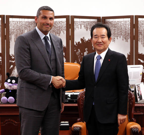 [프라임경제] 우리나라를 방문한 칼둔 칼리파 알 무바락 아랍에미리트(UAE) 아부다비 행정청장이 8일 오후 정세균 국회의장을 예방해 40여분간 비공개 회담을 가졌다. 이날 국회 집무실에서 칼둔 청장을 맞은 정 의장은 양국관계의 우호적 발전을 주제로 이야기를 나눴다고 밝혔다.