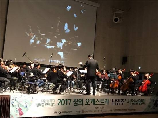 남양주도시공사는 2017년 꿈의 오케스트라 예비거점 운영을 수행하고 2018년 최종 심사에 합격돼 1년간 국비 1억5000만원(차량지원금 1000만원 포함)의 예산을 지원받아 운영한다.