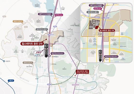 힐스테이트 동탄 2차에서 이용가능한 교통망은 먼저 지난해 개통한 SRT(수서고속철도) 동탄역이 반경 1.2㎞ 이내에 위치해 있다. 동탄역에서 서울 수서역까지는 약 15분이 소요된다.