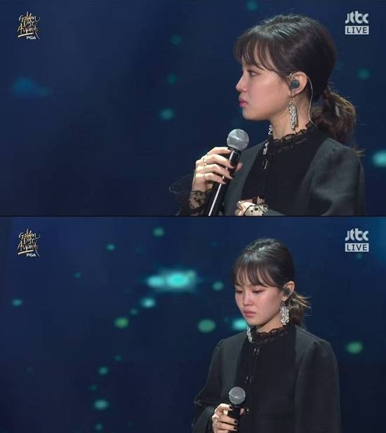이하이가 2018 골든디스크에서 故종현을 추모하는 '한숨' 무대 중 눈물을 흘린 것. 눈물을 흘리는 동안 이하이는 떨리는 손으로 한참동안 노래를 이어가지 못했다.