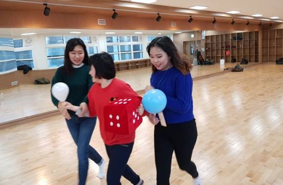 대학생들이 한양대의 무용실을 빌려서 점토 만들기 놀이를 했어요. 또 종이접기도 했어요. 이런 놀이는 발달지연 청소년들의 창의력 발달에 도움이 된다고 해요. = 박마틴 객원기자