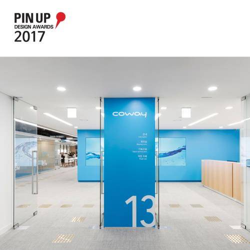 코웨이는 핀업 디자인 어워드에서 12년 연속 디자인상 수상의 영예를 안았다. 이번 2017 핀업 디자인 어워드에서 최고상인 베스트 오브 베스트를 받은 '코웨이 트러스트 라운지'는 코웨이 내부 임직원들의 휴식 및 회의 공간이자, 외부 방문객들을 맞이하는 공간이다.