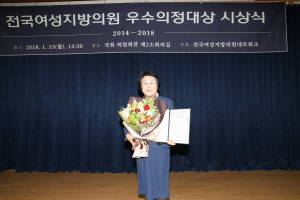 한편 전국여성지방의원네트워크는 성평등 향상 및 생활과 밀착된 지역현안을 개발·정책화하고 여성의원들의 의정활동 강화를 위해 활동하는 단체로서 제7대 지방의회 소속 여성의원들의 4년간 의정활동을 평가해 총 46명의 수상자를 선정했다.
