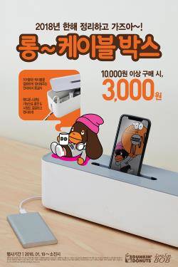 던킨도너츠 관계자는 "새해를 맞아 주변을 깔끔하게 정리하고 새해 목표 달성에 매진하고 싶은 분들을 위해 준비한 실용적인 아이템"이라며 "롱~케이블 박스로 주변을 손쉽게 정리하듯 모든 일이 순조로운 한 해 보내길 바란다"고 말했다.