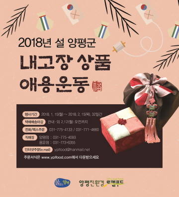 [프라임경제] 경기 양평군은 지역 내 우수 농·특산물을 엄선해 ‘2018년 설맞이 내 고장 상품 애용하기’ 운동을 추진한다고 18일 알렸다.