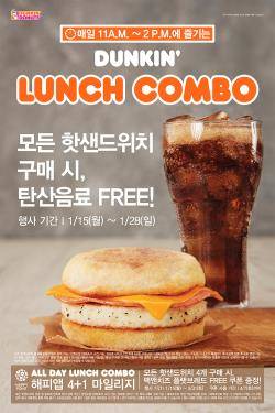 던킨도너츠 관계자는 "직장인과 학생들이 합리적인 가격에 든든하게 배를 채울 수 있도록 런치 콤보 프로모션을 진행하게 됐다"며 "던킨 핫샌드위치와 음료로 만족스러운 점심식사를 즐기길 바란다"고 말했다.