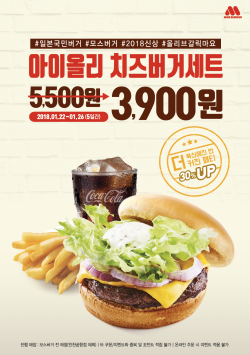 [프라임경제] 프레시버거 브랜드 모스버거(대표 고재홍)는 2018년 새해를 맞아 패티 30% 사이즈업 리뉴얼 기념으로 '아이올리 치즈버거세트'를 오는 26일까지 30% 할인된 가격에 판매한다고 22일 알렸다.