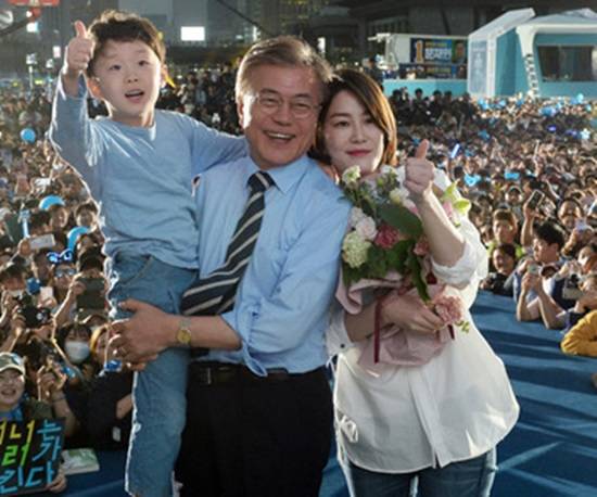 문 대통령이 처음으로 대선에 나섰을 때인 2012년 땐 김정숙 여사와 문 대통령 아들 준용씨만이 문 대통령 출마선언에 함께 했다.