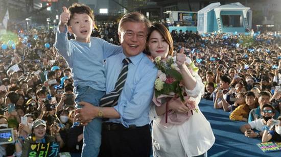 문 대통령이 처음으로 대선에 나섰을 때인 2012년 땐 김정숙 여사와 문 대통령 아들 준용씨만이 문 대통령 출마선언에 함께 했다.