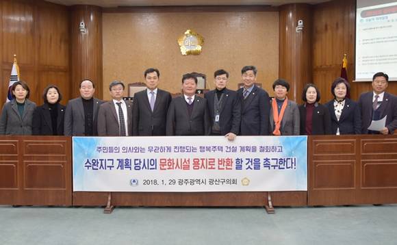 [프라임경제] 광주광역시 광산구의회(의장 조승유)가 수완지구 장덕동 문화시설용지를 전용하는 행복주택 건설 계획을 철회할 것을 촉구했다.