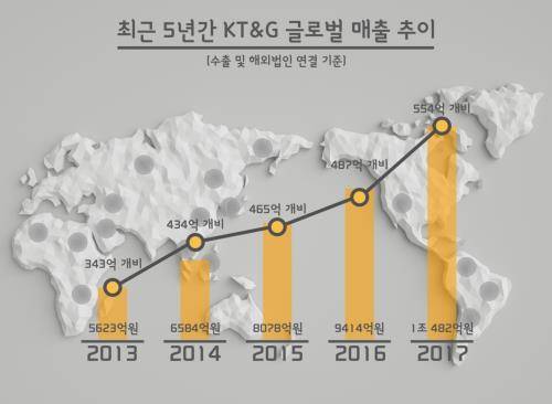 지난 1988년 수출을 시작한 KT&G는 현재 50여개국에 진출한 세계 5위 글로벌 담배 기업으로 자리매김했다. 1999년 당시 26억개비에 불과하던 해외 판매량은 민영화를 계기로 18년 만에 20배 이상 성장을 거뒀다.