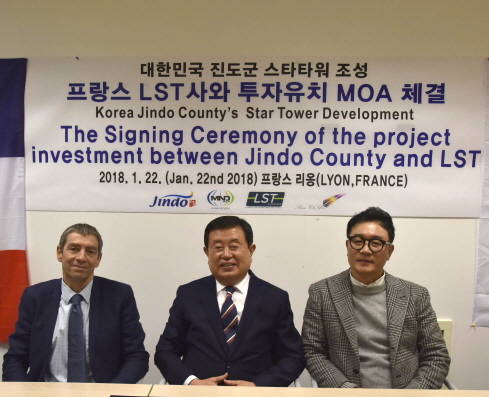[프라임경제] 진도군은 세계적 수준의 종합 레저형 200M 높이의 스타 타워 조성을 위해 최근 프랑스 MND그룹 LST 회사로부터 3000만달러(US달러)이상 투자를 위한 투자합의각서(MOA)를 체결했다고 1일 밝혔다.