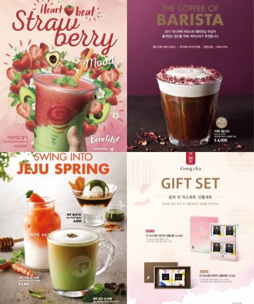 이밖에도 우유와 딸기로 만든 '생(生) 딸기 우유', 100% 하동 녹차잎으로 만든 말차에 딸기를 넣은 '딸기 말차 라떼', 그라놀라와 바나나, 딸기가 토핑된 '딸기 에너지 보울', 생과일 딸기를 그대로 갈아 넣은 '생딸기 주스'가 있다.