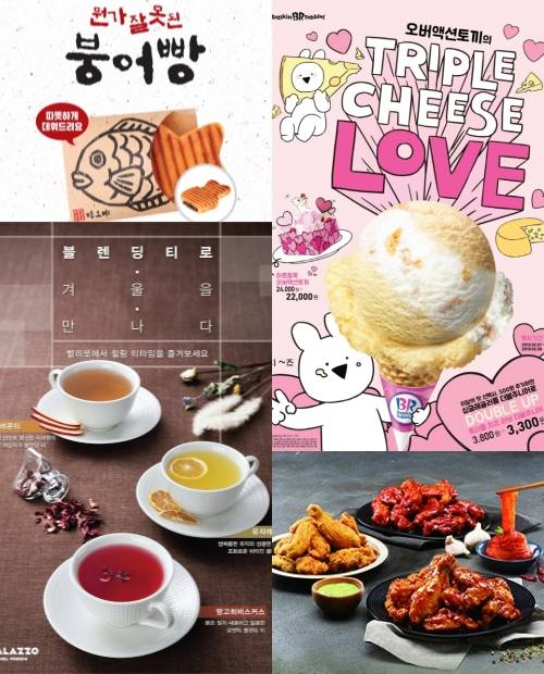 배스킨라빈스는 오버액션토끼와 컬래버레이션, 이달의 맛 '트리플 치즈 러브'와 △하트듬뿍 오버액션토끼 케이크 △베리베리 스트로베리 블록팩 △트리플 치즈 러브 와츄원 쉐이크 △미니 티라미수 스트로베리 등을 내놨다.