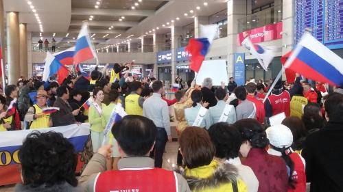 특히 러시아선수단을 맞이할 때 코리안서포터즈는 주한 러시아 대사관 직원, 러시아 유학생 등과 함께 '웰컴 투 평창, 코리아'를 연호하며 선수들과 손을 맞잡았다.