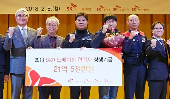 [프라임경제] SK이노베이션(096770)은 울산CLX에서 회사 직원들 급여 1% 기부를 통한 모금액을 협력사 구성원들에게 전달하는 '2018 SK이노베이션 협력사 상생기금 전달식'을 진행했다고 5일 밝혔다.