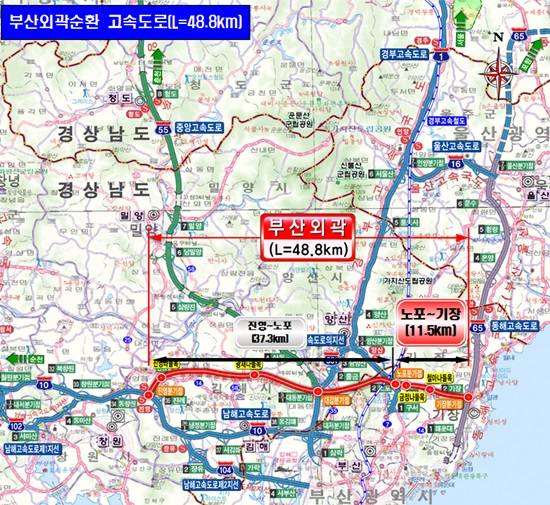 국토교통부는 지난해 12월 28일 전체 구간(48.8km) 중 노포 분기점~기장 분기점 11.5km를 우선 개통한데 이어 2월 7일 오후 5시 부산외곽순환고속도로의 나머지 구간 37.3km를 개통한다고 6일 밝혔다.