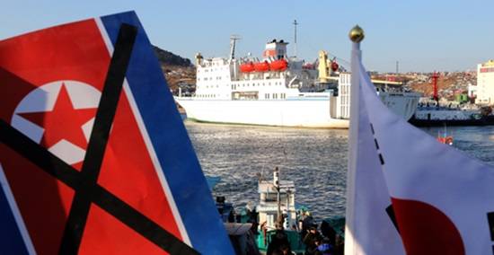 한편 보수단체 소속으로 추정되는 시민들은 이날 만경봉-92호 입항에 앞서 '평양올림픽 반대 기자회견'을 열었고, 애국가를 제창하는 등 집회를 이어갔다.