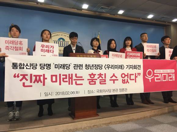 우리미래는 6일 국회 정론관에서 통합신당의 미래당 약칭 철회를 요구하는 기자회견을 진행했고 곧장 국민의당 당사 앞에서 당명 사수 100시간 철야 1인 릴레이 시위에 돌입했다.