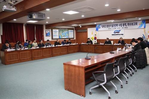 이날 광양경제청 상황실에서 강효석 청장직무대리, 산업연구원 연구진, 관계공무원 등 20여명이 참석해 보고회를 가졌다.