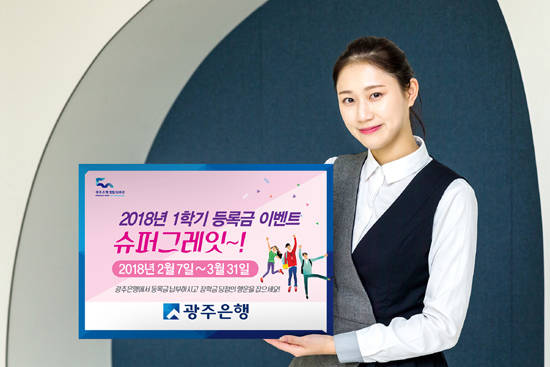 [프라임경제] 광주은행(은행장 송종욱)은 7일부터 오는 3월31일까지 대학등록금 납부 고객을 대상으로 '슈퍼그레잇~! 2018년 1학기 등록금 이벤트'를 실시한다고 밝혔다.