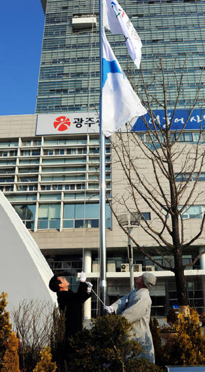 [프라임경제] 광주광역시는 시청 광장 국기게양대에 평창 동계올림픽기와 한반도기를 함께 게양했다.