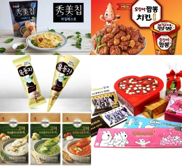 한편 이번 기획제품은 제품에 따라 판매하는 유통채널이 다르다. 오버액션토끼 제품은 세븐일레븐, 워너원 패키지 제품은 CU와 GS25, 스누피와 금괴 형태 제품은 홈플러스, 하트 상자는 롯데마트, 도모군 캐릭터 제품은 이마트에서 각각 판매한다.