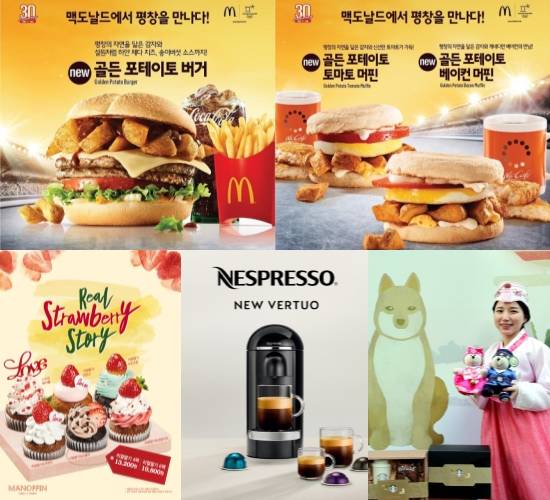 맥도날드는 평창 동계올림픽을 기념해 △골든 포테이토 버거 △골든 포테이토 베이컨 머핀 △골든 포테이토 토마토 머핀 올림픽 기념 메뉴 3종을 출시했다.