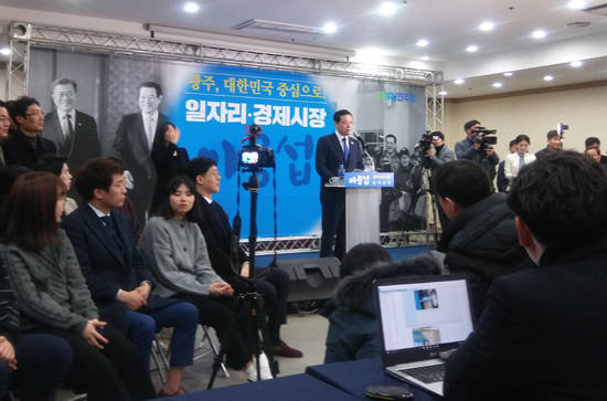 이어 "촛불혁명으로 대한민국에는 봄이 왔지만 광주는 아직 봄을 말할 수 없다"며 "제가 촛불혁명으로 만들어진 10년 만의 기회를 살려 한반도 남녘의 중소도시로 추락하고 있는 광주에서 '정의로운 번영' '함께 나누는 풍요'를 실현하겠다"고 강조했다.