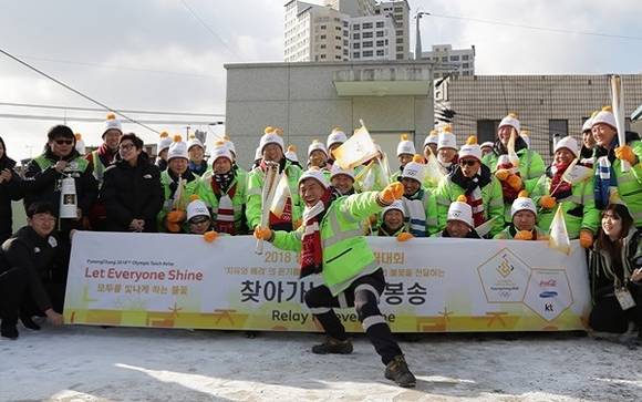 경기장에 켜 놓는 횃불인 성화를 운반하는 사람들을 '성화봉송단'이라고 하는데요, 봉송단이 10번째 쉬는 날을 맞아서 지난 1월9일에 경기도 이천시 환경미화원들은 만나러 갔어요. 환경미화원은 거리마다 버려지는 폐기물 및 다시 쓸 수 있는 재활용품을 거두어 가기, 도로 청소, 공중화장실의 청소·관리 등의 일을 해요.