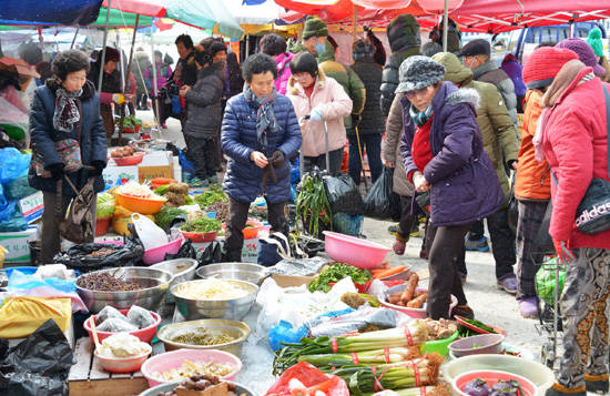 [프라임경제] 설 연휴를 3일 앞둔 지난 12일, 오일장이 열린 담양시장에 눈이 내리는 추운 날씨에도 설 제수용품을 고르는 사람들로 북적이고 있다.